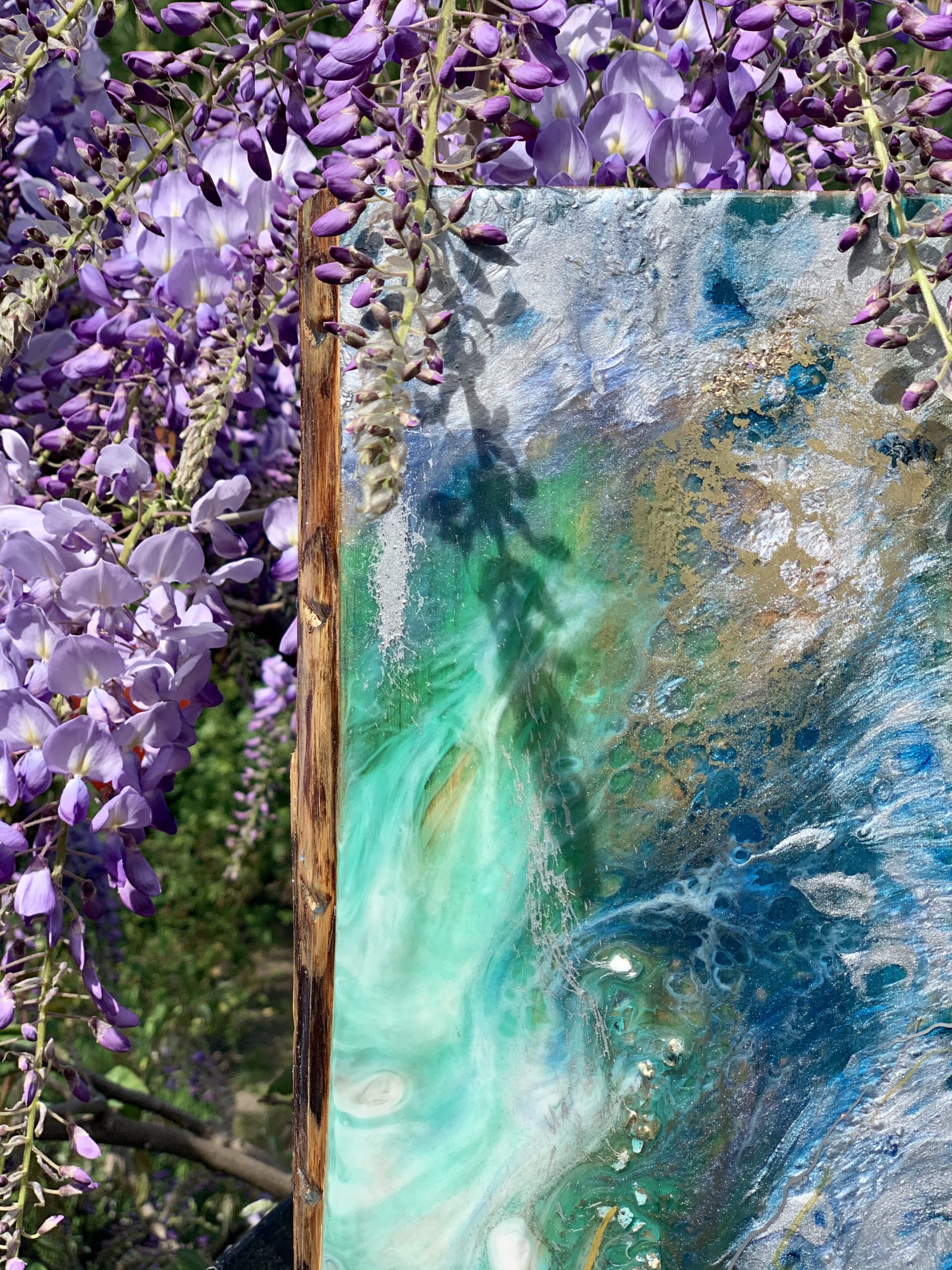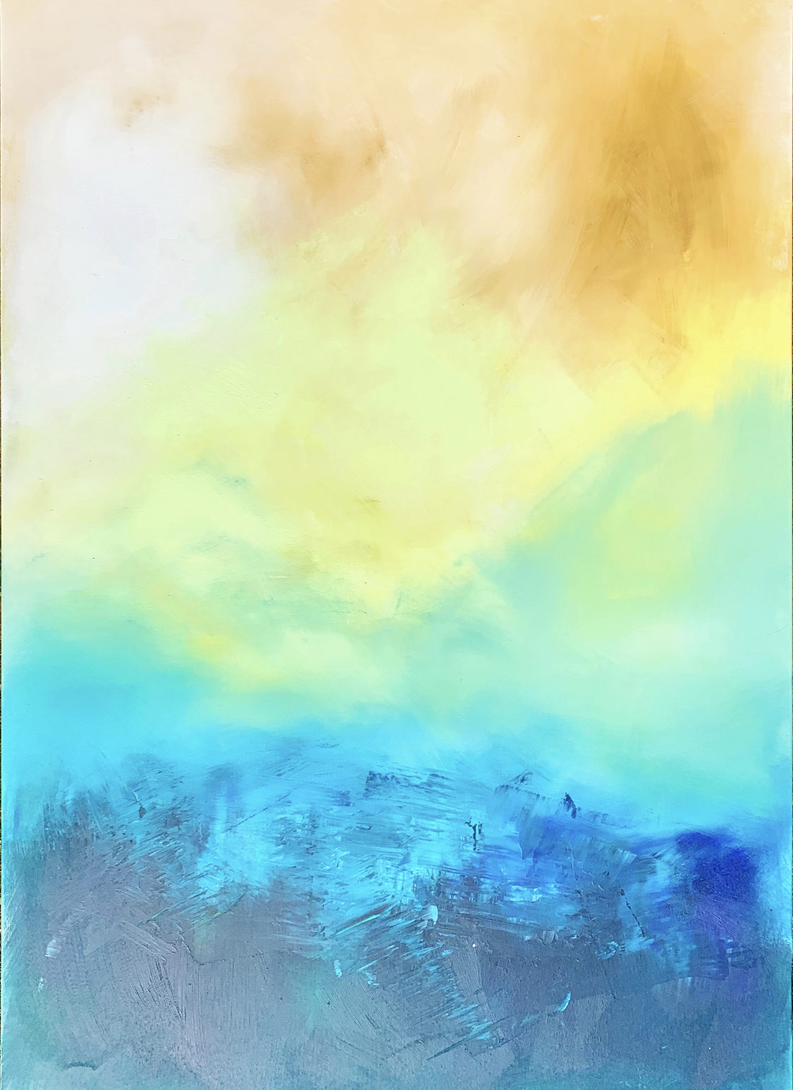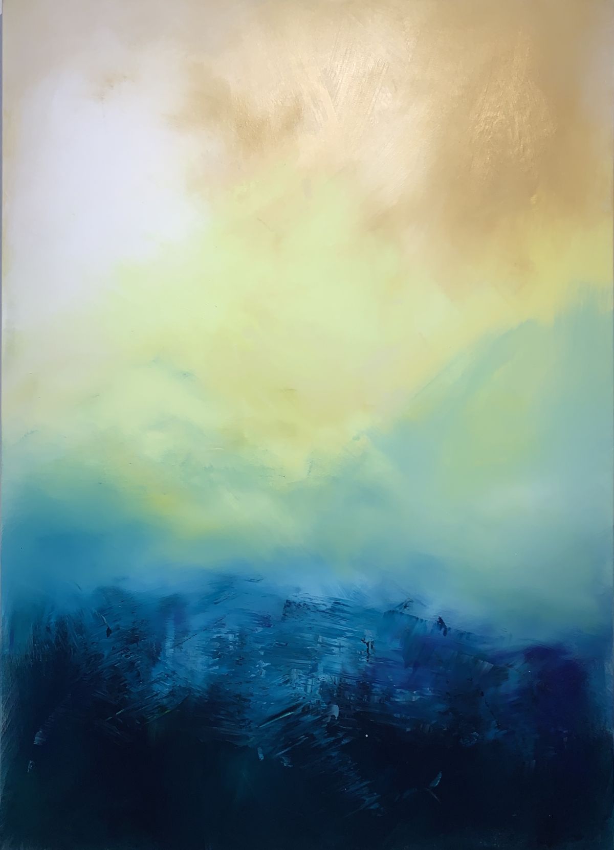 An vielen Bildern arbeite ich über Monate hinweg, sodass sie am Ende aus zahlreichen Schichten bestehen. Durch den Einsatz von hauchdünnem Wachs schimmert an einigen Stellen die Untermalung nebulös durch. So entsteht ein vielschichtiges, dreidimensionales und tiefes Bild, in dem man ständig neues entdecken kann.